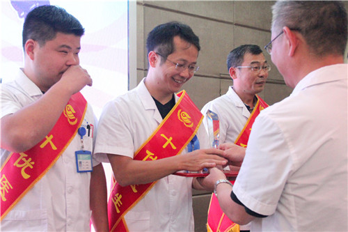 汪書記宣讀表彰通報(bào),韓兵、王書健、趙小康、徐先進(jìn)、張慧、徐松濤、祝愛民、朱春華、張明龍、阮宏智十位同志被授予醫(yī)院首屆“十優(yōu)醫(yī)生”稱號(hào),在家出席會(huì)議的院領(lǐng)導(dǎo)分批為他們頒發(fā)了證書和獎(jiǎng)杯。