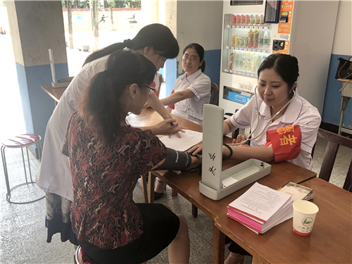 醫(yī)護(hù)人員認(rèn)真接待每一位前來(lái)就診的老師,免費(fèi)發(fā)放健康教育處方、讀本、小冊(cè)子,提供測(cè)血壓、測(cè)血糖、測(cè)血型及用藥指導(dǎo)服務(wù),進(jìn)行詳細(xì)講解、宣傳,并耐心細(xì)致給予飲食建議,讓老師們了解疾病的危害及防治,享受到“家門口”優(yōu)質(zhì)的醫(yī)療服務(wù)。
