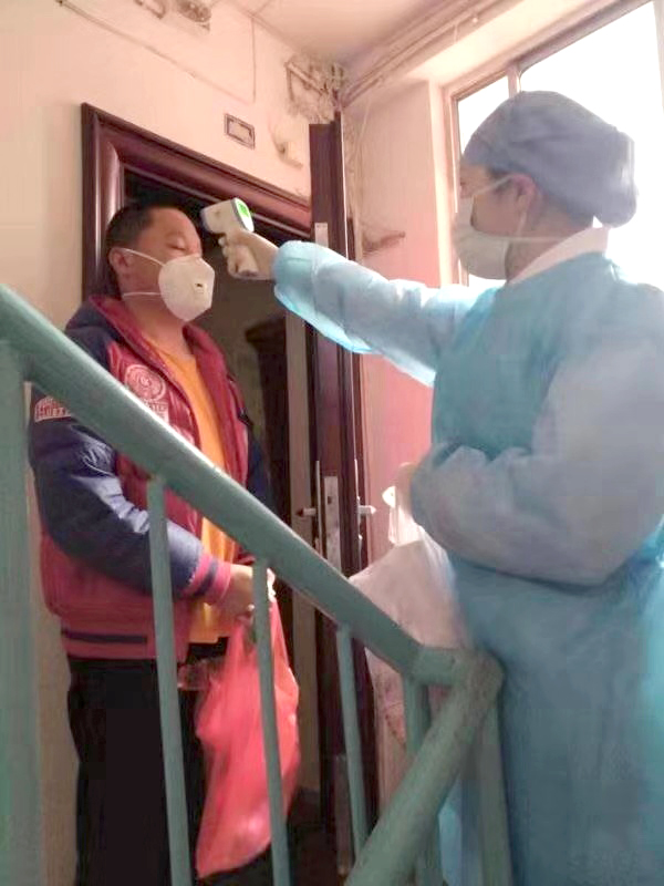 “您好,今天感覺(jué)怎么樣???”在做好院內(nèi)疫情防控的同時(shí),醫(yī)院還承擔(dān)了社區(qū)排查工作,從源頭上阻斷傳播 。石化醫(yī)院12名醫(yī)療點(diǎn)人員,定時(shí)上門對(duì)武漢來(lái)宜人群測(cè)量體溫,同時(shí)積極宣傳科學(xué)防控知識(shí),給居家隔離的人們送去關(guān)愛(ài)和溫暖。