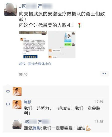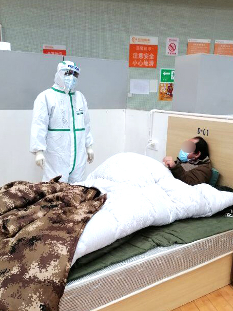 2月16日,疏平收到了他的求助信息。嚴(yán)先生患有糖尿病,他所攜帶的胰島素甘舒霖只能再維持三天。疏平立即聯(lián)系上級(jí),多方協(xié)調(diào),第二天就從武漢當(dāng)?shù)蒯t(yī)院調(diào)來(lái)甘舒霖。拿到胰島素后,嚴(yán)先生特地向疏平表示了感謝。在隨后的一段日子里,疏平也十分關(guān)注他的治療和生活情況,“畢竟不得不和家人分開(kāi),在醫(yī)院隔離治療,時(shí)間一長(zhǎng)難免會(huì)情緒低落,我們更要關(guān)心他們?!睘榱私o嚴(yán)先生和其他患者鼓勁加油,疏平常抽空和他們聊天,進(jìn)艙查看病房物資時(shí),也會(huì)特地去看望他們,甚至還多次把自己省下來(lái)的食品和生活用品委托隊(duì)友帶給他們。