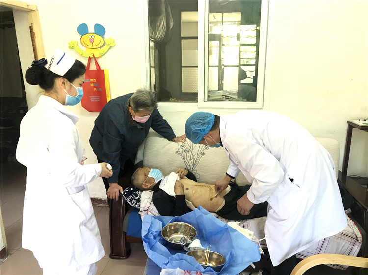 4月9日周四上午,我院安排普通外科操海寶副主任以及天使愛心服務(wù)隊(duì)成員、普通外科陳誠副護(hù)士長(zhǎng)、護(hù)理部董甜甜3人,在做好必要防護(hù)措施的前提下,攜帶相關(guān)醫(yī)療物品前往老人家中。在告知家庭診療延伸服務(wù)相關(guān)內(nèi)容并簽署協(xié)議書后,操主任耐心詢問老人手術(shù)及術(shù)后相關(guān)情況,仔細(xì)檢查切口,消毒拆線,更換敷料,同時(shí),指導(dǎo)老人術(shù)后飲食及注意事項(xiàng)。隨后,陳護(hù)士長(zhǎng)按要求幫老人注射藥物,叮囑老人以后有需要可直接聯(lián)系我院護(hù)理部。
