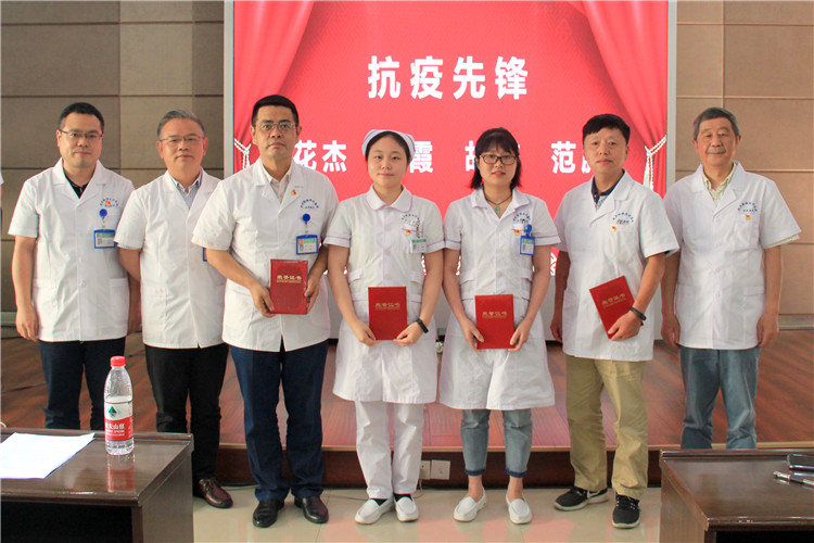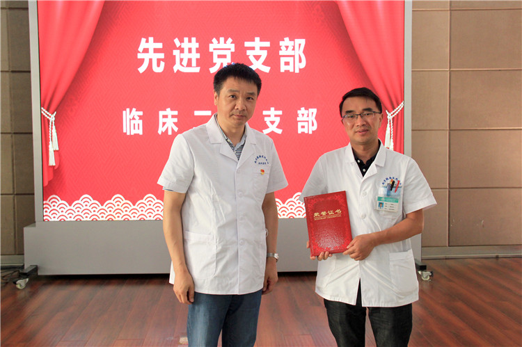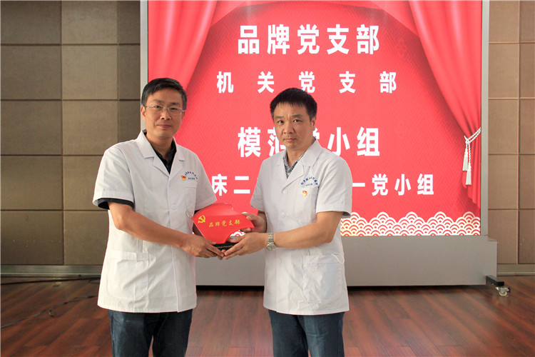 院領(lǐng)導(dǎo)為“品牌黨支部”機(jī)關(guān)黨支部、“模范黨小組”臨床二黨支部第一黨小組授牌,為“先進(jìn)黨支部”臨床二黨支部、“抗疫先鋒”花杰、王霞、胡蝶、范騰以及“優(yōu)秀共產(chǎn)黨員”方向東、王超、齊秀芬、劉會(huì)前、葉璐璐、戴錦騰、史秋霞頒發(fā)證書。