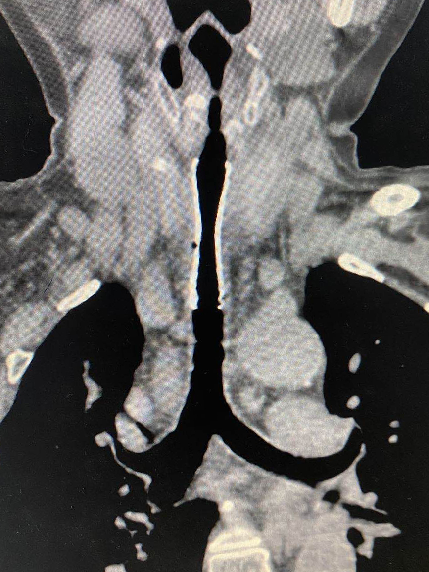 多方打聽下,他們慕名找到我院耳鼻咽喉頭頸外科專家汪文曉?;颊邭夤茏瞠M窄處僅6mm,而正常女性氣管直徑一般為12-15mm,隨時(shí)有窒息的可能??剖覉F(tuán)隊(duì)組織多學(xué)科會(huì)診,商討最優(yōu)治療方案??紤]到患者身體狀況不能接受全麻,最終慎重決定由放射科介入團(tuán)隊(duì)為其施行氣管支架植入術(shù)。