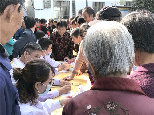 義診現(xiàn)場,人頭攢動。專家們?yōu)槁動嵍鴣淼拇迕窳垦獕?、測血糖、把脈搏、做體檢,詳細詢問身體狀況,耐心分析病情,講解注意事項,認真解答他們的各種問題。對他們自帶的檢查報告和影像資料,也細致查看、解讀。通過這種面對面的醫(yī)患交流,提高了村民們對疾病的認識,提升了健康意識。