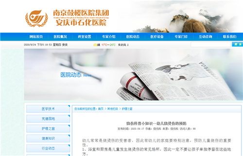 917日,護(hù)理部利用醫(yī)院網(wǎng)站的“護(hù)理之窗”版塊,為百姓科普燒燙傷防治知識,“你需要知道的燒傷自救常識”、“燒傷科普小知識——家庭康復(fù)治療篇”、“燒傷科普小知識——幼兒燒燙傷的預(yù)防”等內(nèi)容淺顯易懂,干貨滿滿。