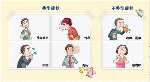 1、頻繁咳嗽,尤其在夜間。2、呼吸用力或氣短。3、運(yùn)動時感到疲乏或乏力。4、運(yùn)動后感到胸悶或咳嗽。5、感到疲勞、易煩躁、心情不快或喜怒無常。6、峰流速值降低。7、出現(xiàn)感冒樣或過敏癥狀(打噴嚏、流涕、咳嗽、鼻塞、咽痛和頭痛)。