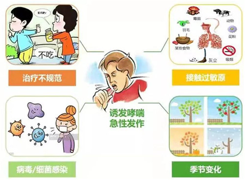 誘發(fā)因素通常是指能誘發(fā)哮喘患者的急性發(fā)作、加重哮喘癥狀的因素。不少誘發(fā)因素有季節(jié)性特點,與過敏原吸入、呼吸道感染及天氣變化等因素有關(guān)。