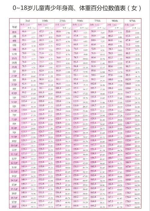 矮小癥是指兒童的身高低于同性別、同年齡、同種族兒童平均身高的2個(gè)標(biāo)準(zhǔn)差,每年生長速度低于5厘米者。兒童生長速度出現(xiàn)這幾種情況,都提示生長緩慢,家長請注意:①3歲前小于7厘米/年;②3歲到青春期小于5厘米/年;③青春期小于6厘米/年。寶媽寶爸還可參考下圖,對比一下自家寶寶的身高: