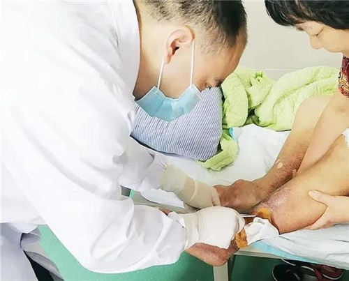 燒傷整形科韓張杰主任醫(yī)師、內(nèi)分泌科余慶華主治醫(yī)師為王先生切除了左小腿潰瘍并擴(kuò)創(chuàng),給予負(fù)壓吸引,同時進(jìn)行左小腿植皮。