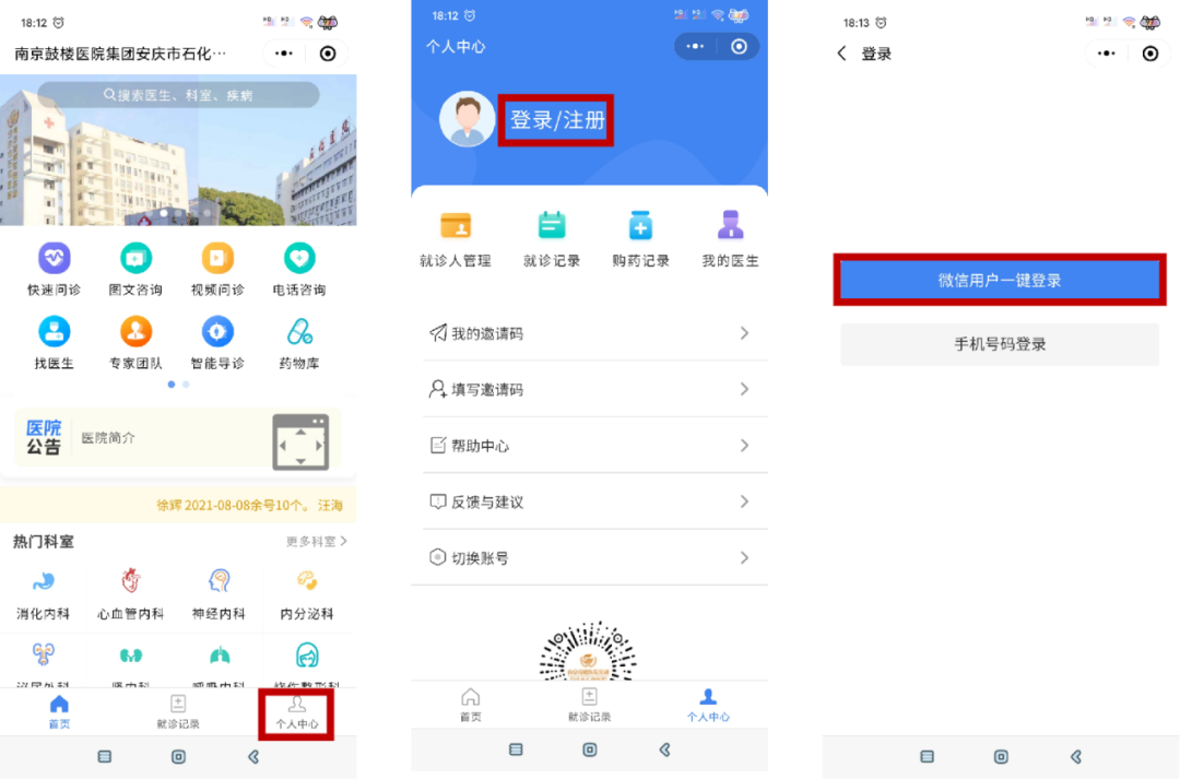 “個(gè)人中心”-“登錄”-“微信用戶一鍵登錄”