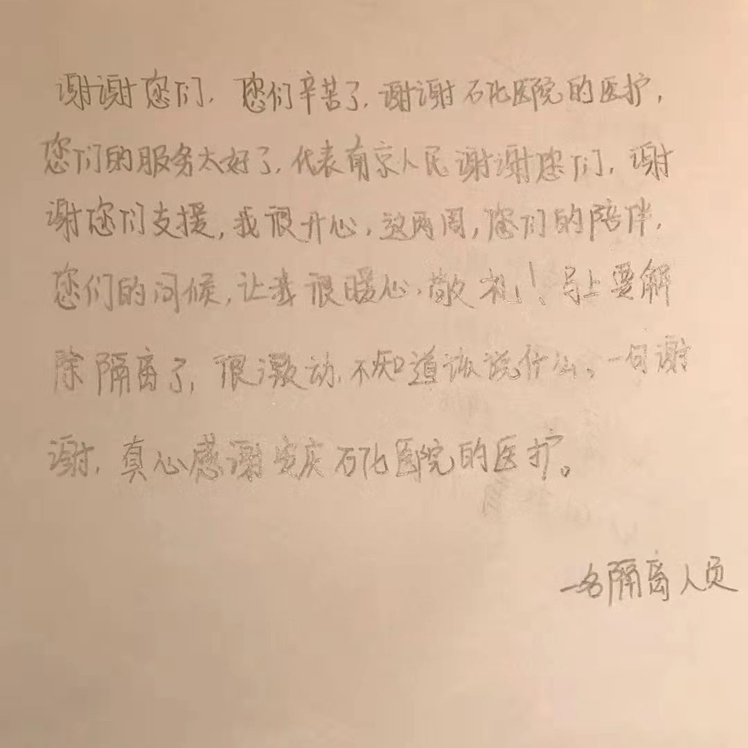 疫情當前,沖鋒一線守護百姓健康是我們醫(yī)護人員的職責,忙碌之余,我們還收到了即將解除隔離人員送來的感謝信,字里行間都是真情,讓人倍感溫暖,這真是我們收到過最好的禮物了!