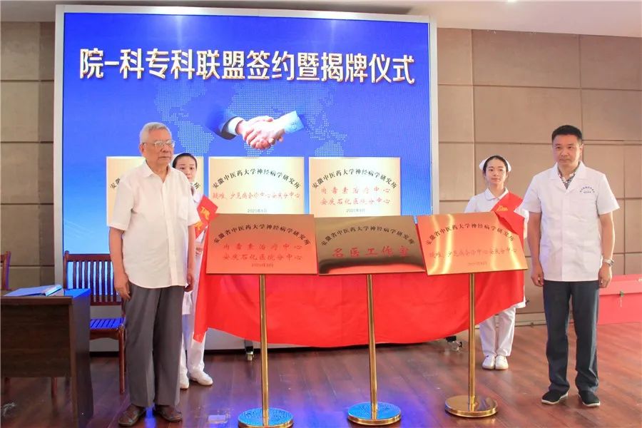 2020年9月,安徽中醫(yī)藥大學(xué)神經(jīng)病學(xué)研究所附屬醫(yī)院正式與石化醫(yī)院神經(jīng)內(nèi)科開展“院-科聯(lián)盟”建設(shè),在石化醫(yī)院設(shè)立安徽中醫(yī)藥大學(xué)神經(jīng)病學(xué)研究所“名醫(yī)工作室”、“疑難、少見病會(huì)診中心”和“肉毒素治療中心安慶石化醫(yī)院分中心”。