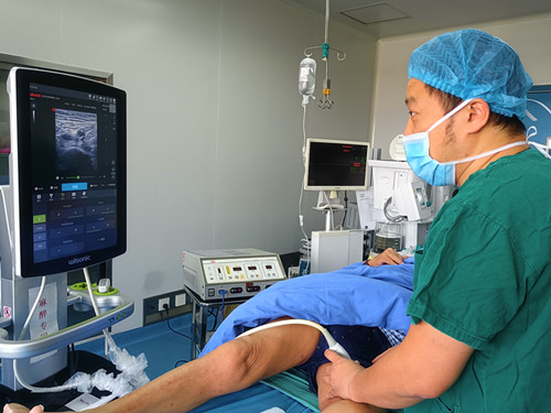 不止護理團隊,麻醉科醫(yī)生團隊也致力于為患者提供優(yōu)質(zhì)服務(wù)。副主任阮宏智開展了超聲引導(dǎo)下的神經(jīng)阻滯麻醉,操作全程可視化,定位精準(zhǔn),能顯著提高神經(jīng)阻滯安全性,尤其適用于高齡以及合并多系統(tǒng)疾病的患者的四肢手術(shù)麻醉、鎮(zhèn)痛,胸腹部手術(shù)的術(shù)后鎮(zhèn)痛等,減輕疼痛,利于術(shù)后恢復(fù),也契合日間手術(shù)快速康復(fù)的理念。