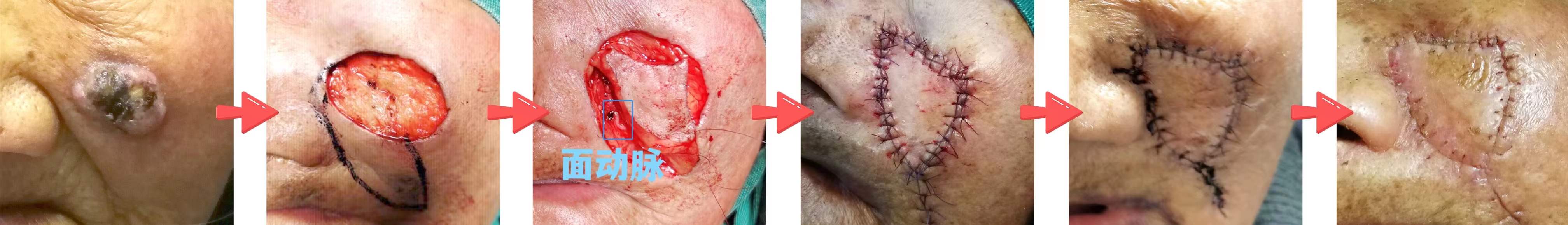 手術(shù)當天,切除瘤體后,術(shù)中快速冰凍切片報告為鱗狀細胞癌,與楊中目醫(yī)生的判斷基本吻合。由于夏婆婆面部缺損較大,耳鼻咽喉頭頸外科學科帶頭人汪文曉與楊中目副主任醫(yī)師等人通力合作,以面動脈為滋養(yǎng)血管的“島狀”皮瓣修復(fù)創(chuàng)面。在病理科、麻醉科、醫(yī)學影像科、功能檢查科、檢驗室、心血管內(nèi)科、呼吸與危重癥醫(yī)學科等科室的支持下,手術(shù)順利完成。術(shù)中,夏婆婆睡了一會兒,醒來時以為手術(shù)還沒開始,但其實已經(jīng)結(jié)束,夏婆婆直呼“真的一點感覺都沒有”。