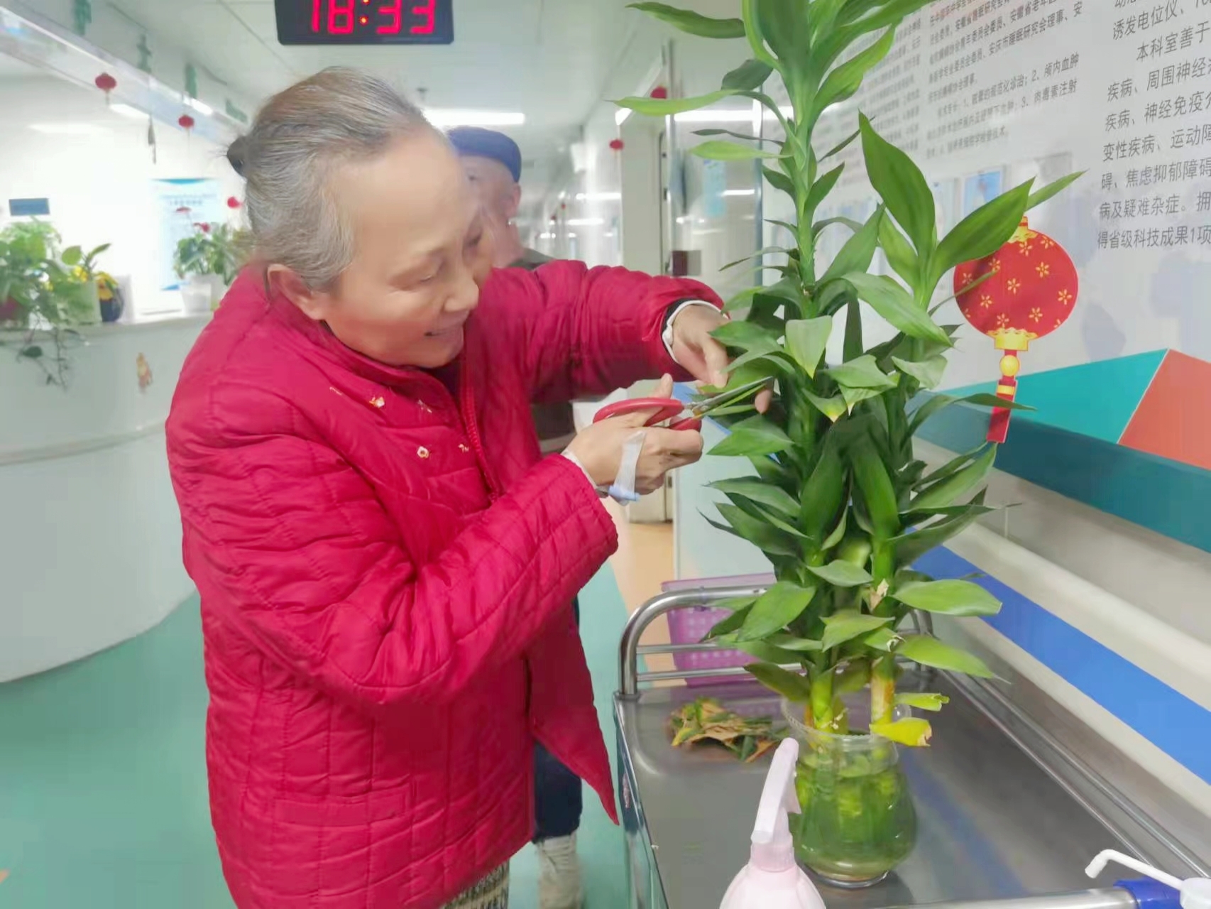 醫(yī)護(hù)人員的付出,病人和家屬都看在眼里,神經(jīng)內(nèi)科一位熱心的老年患者主動(dòng)幫著修剪花草,“新年要有新氣象!”