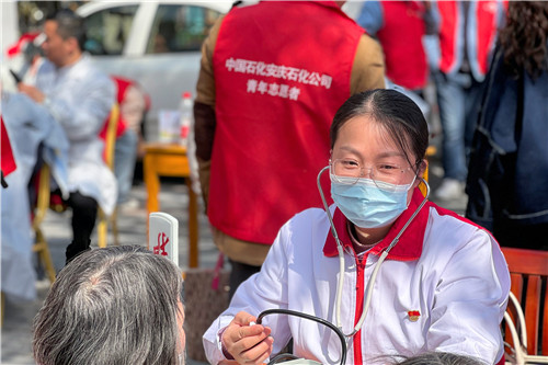 3月5日“學(xué)雷鋒日”當(dāng)天上午,在黨委青年委員、副院長操海寶的帶領(lǐng)下,醫(yī)院紅十字志愿服務(wù)隊(duì)及團(tuán)委20余名青年醫(yī)護(hù)來到石化大湖社區(qū)開展義診志愿服務(wù)活動,倡導(dǎo)科學(xué)健康生活方式。前來問詢看診的市民絡(luò)繹不絕,每一位志愿者都秉持著“奉獻(xiàn)、友愛、互助、進(jìn)步”的志愿者精神,共計(jì)為580余名市民提供健康義診服務(wù),發(fā)放疾病預(yù)防宣教材料400余份。