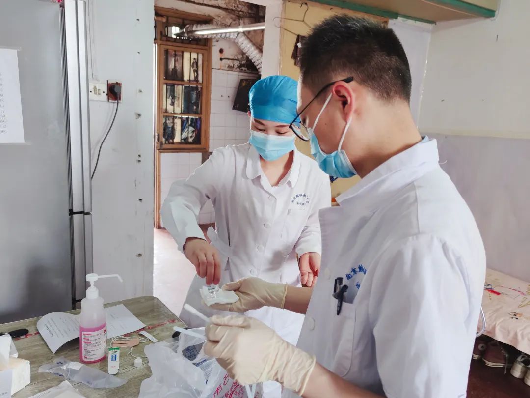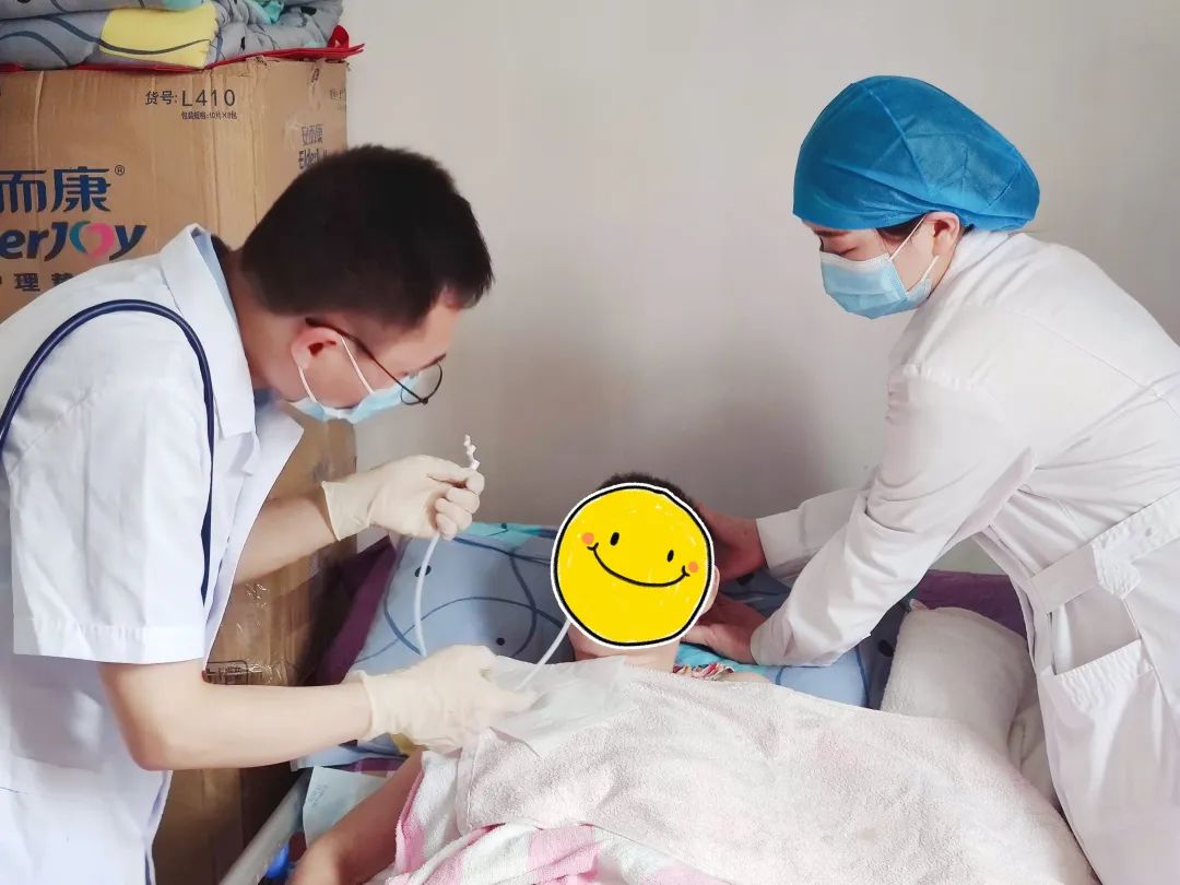 在備齊所需物品后,醫(yī)護(hù)人員來到李阿姨家中。進(jìn)行相關(guān)體征檢查并評估患者身體狀況后,準(zhǔn)備用物。醫(yī)生吳亞為和護(hù)士潘星星配合默契,操作嫻熟,不一會兒就為李阿姨更換好了新的胃管。