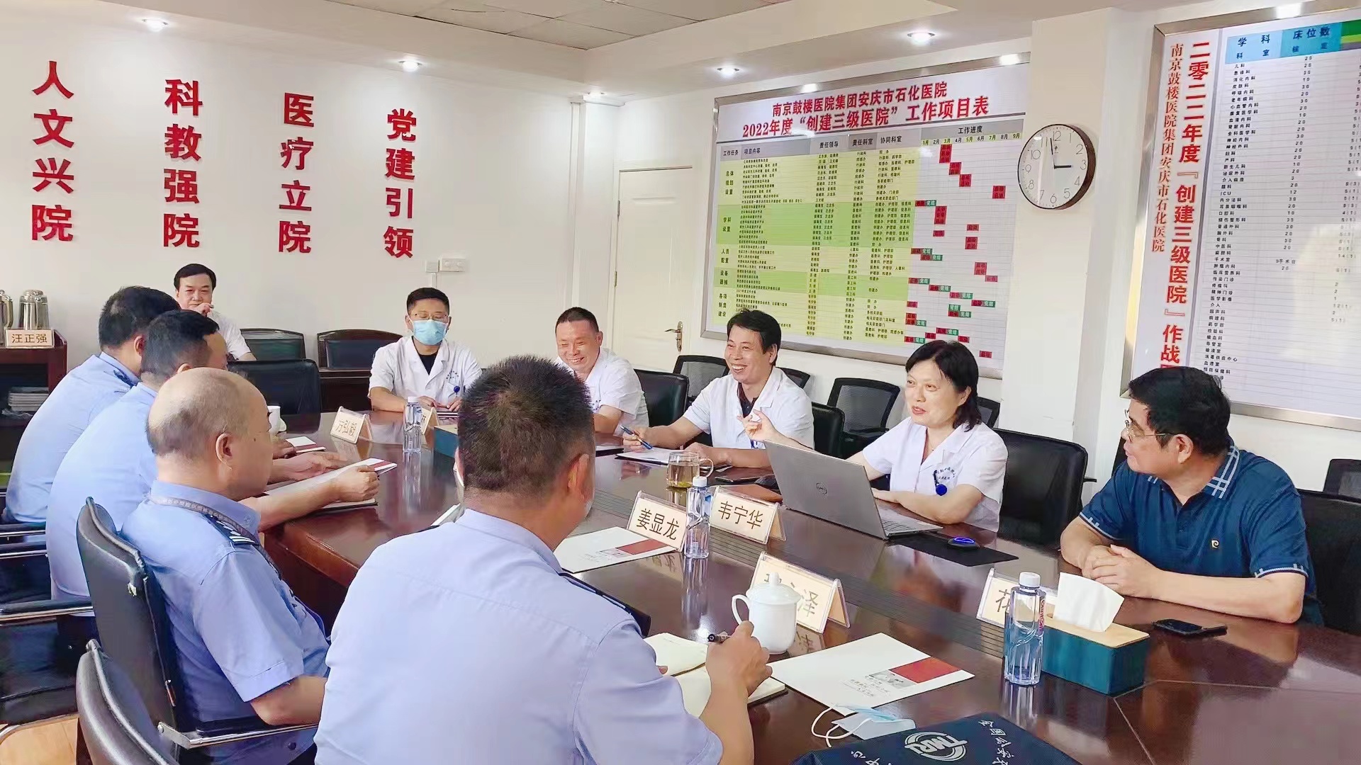 6月15日,安慶市公安局交通警察支隊(duì)事故處理綜合服務(wù)中心領(lǐng)導(dǎo)姜顯龍、劉向東一行4人蒞臨石化醫(yī)院指導(dǎo)工作。石化醫(yī)院院長韋寧華、副董事長花杰、副院長操海寶、汪念東及醫(yī)保管理運(yùn)營中心主任汪柏林等陪同調(diào)研。