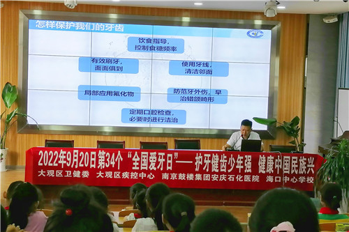 今年9月20日是第34個(gè)“全國(guó)愛(ài)牙日”,當(dāng)天,石化醫(yī)院聯(lián)合安慶市大觀區(qū)衛(wèi)健委、大觀區(qū)疾控中心在??谥行膶W(xué)校舉辦了一場(chǎng)別開(kāi)生面的口腔健康講座。