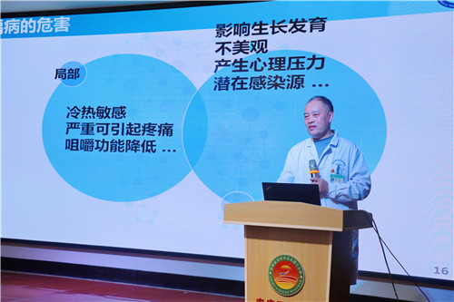牛主任圍繞“口腔健康 全身健康——護(hù)牙健齒少年強(qiáng),健康中國民族興”的主題,結(jié)合生動(dòng)有趣的PPT和動(dòng)畫,向同學(xué)們講解如何遠(yuǎn)離齲病、避免牙齦出血、防止牙外傷、矯治錯(cuò)頜畸形等知識(shí),幫助他們從小就樹立愛牙意識(shí),保護(hù)口腔健康。