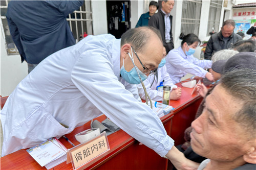 3月29日,石化醫(yī)院黨委副書記汪文曉帶領(lǐng)專家團(tuán)隊(duì)一行14人,攜B超機(jī)、心電圖機(jī)等設(shè)備驅(qū)車2個(gè)多小時(shí),奔赴潛山市三里村開展大型義診活動(dòng),為當(dāng)?shù)鼐用袼腿?yōu)質(zhì)便利的醫(yī)療服務(wù)。