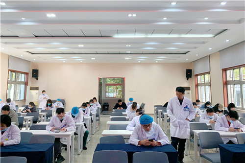 本次考試全程閉卷、線上獨立答題,內容涵蓋臨床、醫(yī)技多方面專業(yè)知識,韋寧華院長、操海寶副院長現(xiàn)場監(jiān)考。
