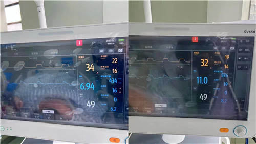 治療前后對比:患者每分鐘通氣量明顯增加,血氧飽和度顯著改善