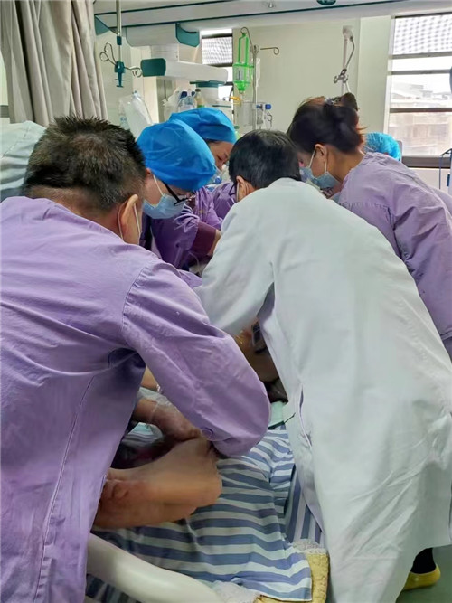 “俯臥位通氣”雖好,但對于重癥醫(yī)學(xué)科的患者來說,病情較復(fù)雜,全身導(dǎo)管多,翻身難度大。石化醫(yī)院重癥醫(yī)學(xué)科為確?;颊叻頃r的管路安全,不斷優(yōu)化流程,改良翻身技巧,緊密醫(yī)護合作,力求為患者提供更優(yōu)質(zhì)的醫(yī)療服務(wù),促進患者更快速康復(fù)。