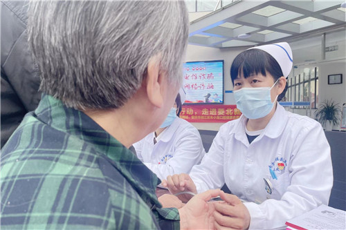 護理專家為前來咨詢的市民量血壓、測血糖,耐心解答疾病相關(guān)問題,并針對合理飲食、規(guī)范用藥、健康保健等方面進行知識宣教。