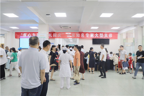 為更好地滿足宜城百姓就醫(yī)需求,院慶當日,石化醫(yī)院不僅全院專家門診、普通門診免費看診,還組織開展南京知名專家大型義診。15位來自南京鼓樓醫(yī)院、南京市兒童醫(yī)院等合作幫扶單位的專家現(xiàn)場為患者提供問診、查體、健康咨詢等服務。義診還未開始,門診就已經排起了長隊,前來就診的群眾絡繹不絕。專家們耐心細致地詢問病情、檢查身體,閱覽病歷,結合檢查結果提出針對性建議,叮囑相關注意事項。