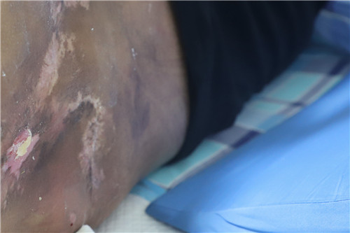 患者因皮膚破潰不愈四處求醫(yī),經(jīng)人介紹來到石化醫(yī)院。葉勇主任檢查發(fā)現(xiàn),患者左側(cè)陰囊有一個深2cm的竇道,伴膿性分泌物流出,骶尾部還有一處約4cm的破潰創(chuàng)面。