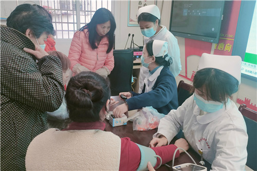 骨科護士及護理雙主體教改班學生志愿者為居民們免費測量血壓血糖,同時發(fā)放宣教手冊及單頁,讓大家對骨科疾病有了更進一步的了解。