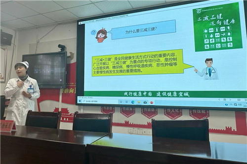 護理部主任劉風英以圖文并茂的方式,引導大家做自己健康的第一責任人,樹立三減三健理念,即減鹽、減糖、減油、健康口腔、健康體重、健康骨骼,養(yǎng)成良好的生活習慣。