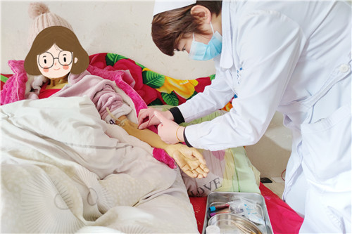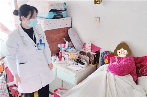 原來,張阿姨是石化醫(yī)院腫瘤內(nèi)科的老病號(hào),因直腸癌肝轉(zhuǎn)移身體虛弱,長期臥床。電話隨訪中,腫瘤內(nèi)科胡麗娜副主任了解到張阿姨近期身體乏力、全腹疼痛并出現(xiàn)黃疸癥狀,前往醫(yī)院治療存在困難,遂決定組織醫(yī)護(hù)團(tuán)隊(duì)主動(dòng)上門服務(wù)。