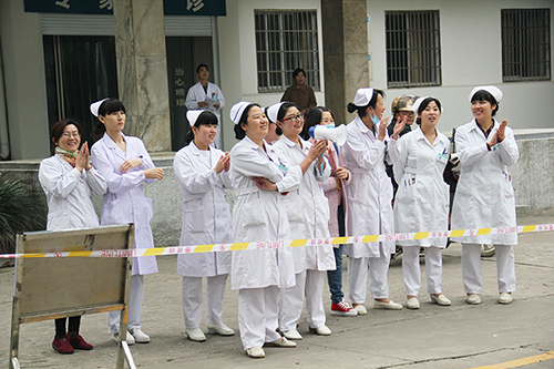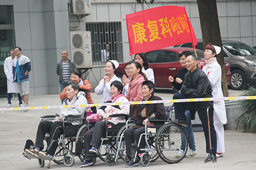 很多員工和病人也趕來(lái)為球員們吶喊助威,現(xiàn)場(chǎng)氣氛熱烈??祻?fù)醫(yī)學(xué)科護(hù)患更是拉起橫幅,組成拉拉隊(duì),成為球場(chǎng)一道亮麗的風(fēng)景線。