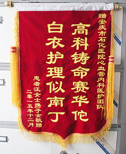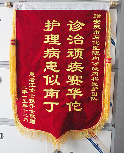 近日,患者汪女士的子女替母親向我院內分泌科和心血管內科全體醫(yī)護送上錦旗,贊揚他們的高超醫(yī)技和精心護理,感謝他們對老人無微不至的照料。