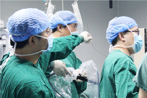 我院泌尿外科周國保主任一直關(guān)注本專業(yè)微創(chuàng)治療最前沿、最有效、安全性最高的技術(shù)。輸尿管軟鏡鈥激光碎石術(shù)是泌尿外科繼藥物排石、體外沖擊波碎石、輸尿管鏡碎石術(shù)、經(jīng)皮腎鏡碎石取石術(shù)、腹腔鏡腎盂輸尿管切開取石術(shù)之后所開展的又一新技術(shù)。