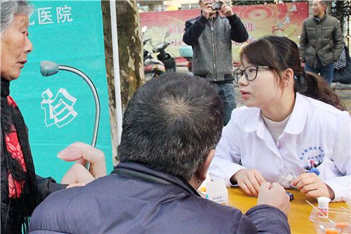 我院團委組織青年醫(yī)護志愿者為社區(qū)居民量血壓、測血糖、開展健康咨詢。免費量血壓400余人次、測血糖200余人次;發(fā)放健康宣教資料,結(jié)合個人情況,叮囑日常注意事項,耐心指導(dǎo)疾病預(yù)防;遇到熟悉的病人,不忘關(guān)心他們最近的身體狀況;對于病情較重的患者登記相關(guān)信息,并建議其到醫(yī)院作進一步診治。
