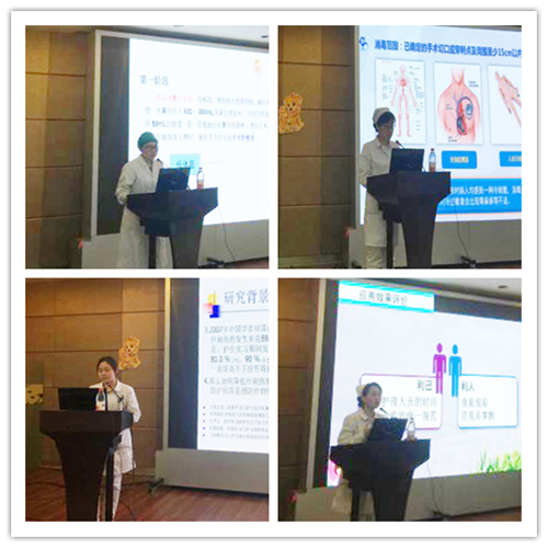 全院各護(hù)理單元積極參與、踴躍報(bào)名,本次大賽共收到創(chuàng)意作品25項(xiàng),項(xiàng)目涉及護(hù)理工作的各個(gè)領(lǐng)域,包括宣教形式的創(chuàng)新、改良自制球囊擴(kuò)張器在后腹腔鏡手術(shù)中的應(yīng)用,引流袋、引流標(biāo)簽的固定新方法、預(yù)防銳器傷的小創(chuàng)意、固定方法的改良等等,經(jīng)過初審,選出22個(gè)創(chuàng)新性與實(shí)用性較強(qiáng)的項(xiàng)目參與評選。選手們分別從研究背景、方法、效果等方面以PPT和實(shí)物的形式進(jìn)行匯報(bào)展示。