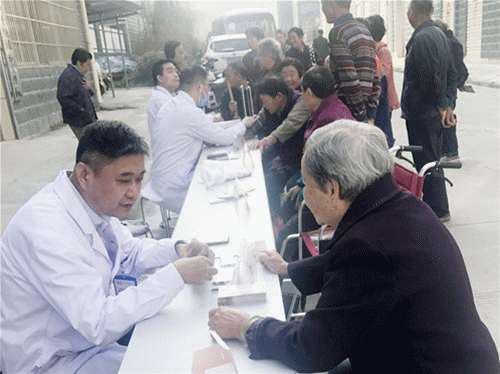 呼吸內(nèi)科姚慶文副主任醫(yī)師、兒科華偉主任、內(nèi)分泌科王安主任和童玲護士長、神經(jīng)內(nèi)科丁衛(wèi)平主治醫(yī)師、消化內(nèi)科沈忱主治醫(yī)師等組成的專家團隊,為十里鋪居民免費測量血壓、血糖,檢查眼底,提供常見病、慢性病診療咨詢,科普保健常識,倡導(dǎo)健康的生活方式。