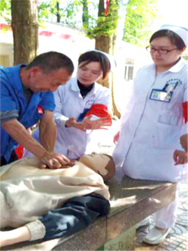 志愿者們一走進養(yǎng)老院就立即投入工作,量血壓、測血糖,陪老人們聊天、耐心解答他們的各類健康問題。志愿者們還對養(yǎng)老院的護理員們進行了心肺復(fù)蘇和誤吸的急救處理技能培訓(xùn)以及老年護理健康宣教,護理員們認(rèn)真學(xué)習(xí)并積極參與模型練習(xí),現(xiàn)場氣氛活躍。