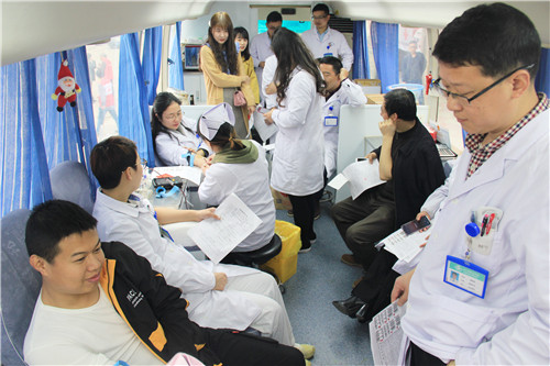 當(dāng)天上午,包括丁俊在內(nèi),共有77名來自石化醫(yī)院的的醫(yī)護(hù)人員無償獻(xiàn)血17900毫升,37人加入中國造血干細(xì)胞捐獻(xiàn)者資料庫。
