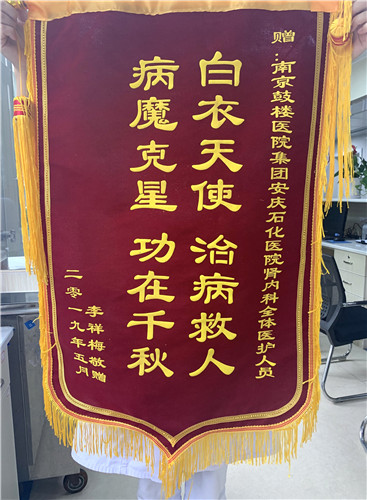 祥梅阿姨是我們的老病號(hào),也是我們的老朋友,長期在我們科住院行透析治療?!拔襾砜纯茨銈?,給你們送錦旗和表揚(yáng)信來啦!謝謝你們一直以來對(duì)我的照顧!”